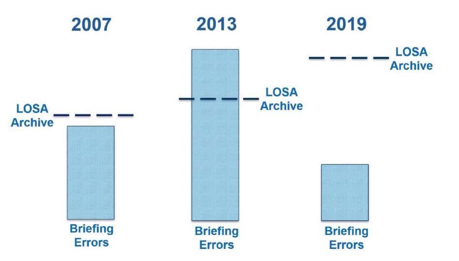 A graph showing the number of briefing errors compared to the LOSA archive average over a period of time also tells an interesting story.