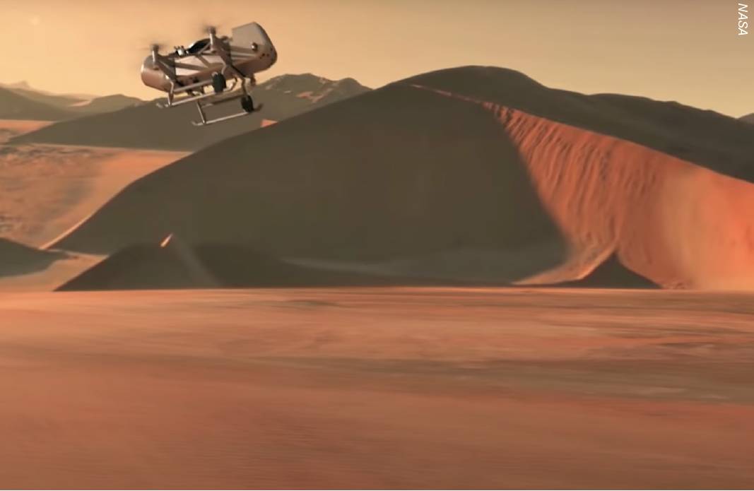 Concept art of Dragonfly flying on Titan. Geoffrey A. Landis