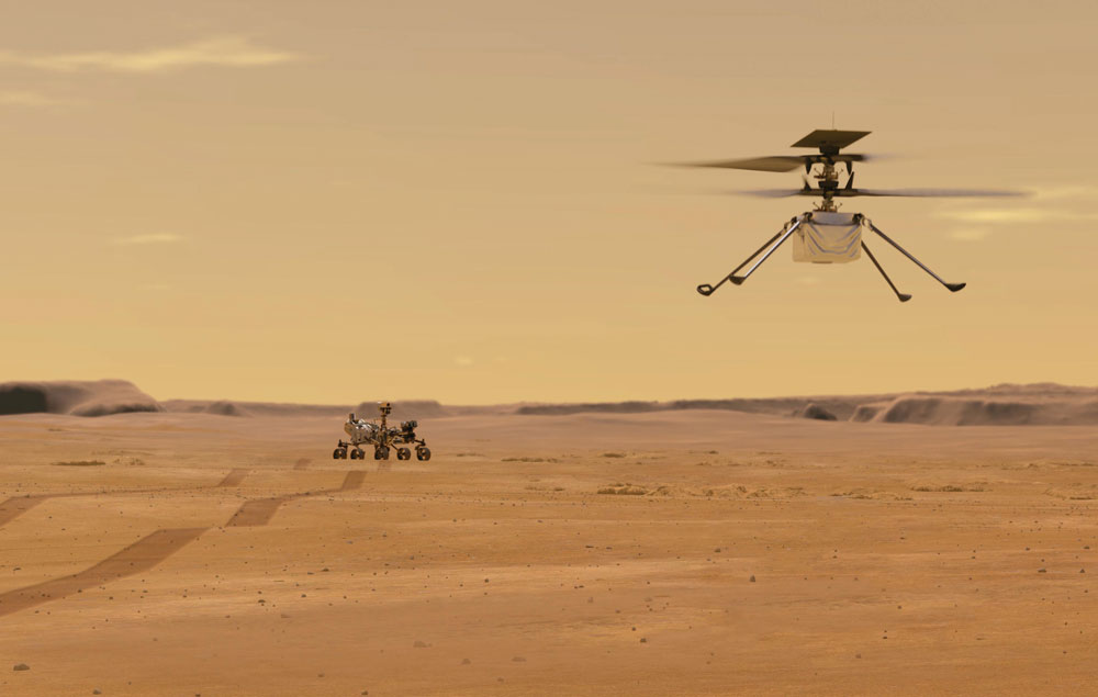 The primary mission of Perseverance is to characterise the planet’s geology and past climate, including the search for signs of ancient microbial life. The rover will collect Martian rock and regolith for future return to Earth by NASA’s next Mars lander scheduled for launch in 2026. However, during April, this mission was paused while a new space technological first was achieved – to fly the first powered, controlled aircraft on Mars.