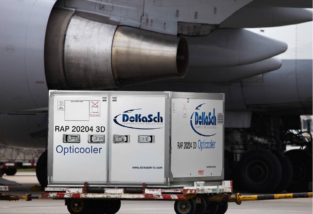 The storage containers come in broadly two types: active and passive. Active, like the Envirotainer, are powered systems which, in general, are quite large and designed for flight in cargo jets as unit load devices (ULDs). These will actively maintain temperature throughout the time that they have power and are nearly always reusable. Passive are unpowered and consist of an insulated container with dry ice or some form of phase change material to maintain the temperature. These items come in a variety of sizes from what are termed ‘Parcel Products’ to much larger units with sizes varying from 2–3,000 litres.